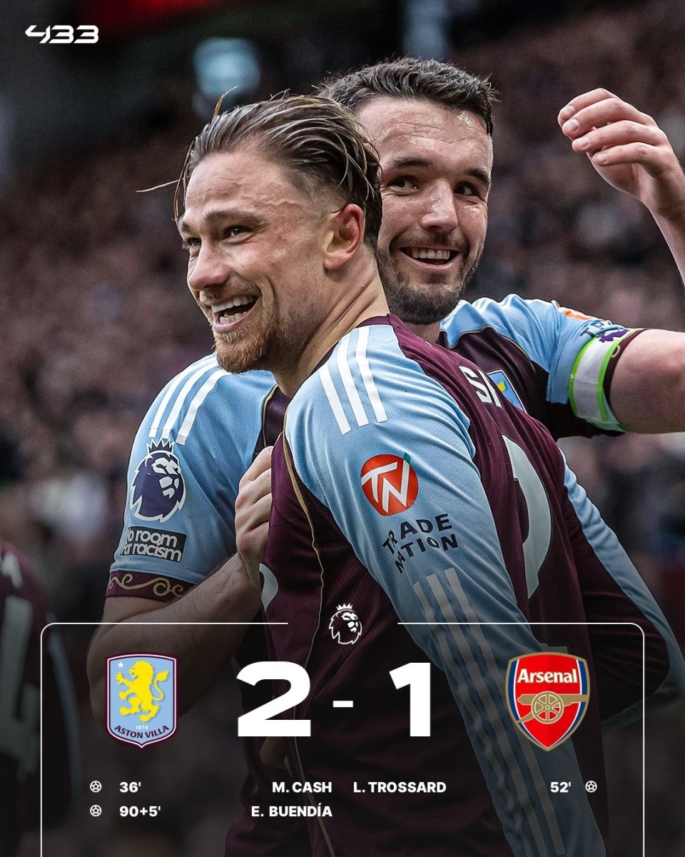 英超第15轮,阿森纳客场1-2阿斯顿维拉,各项赛事18场不败终结,维拉各项赛事7连胜!埃泽破门因萨卡越位在先被判无效,卡什凌空抽射建功,特罗萨德替补登场扳平,布恩迪亚读秒绝杀!