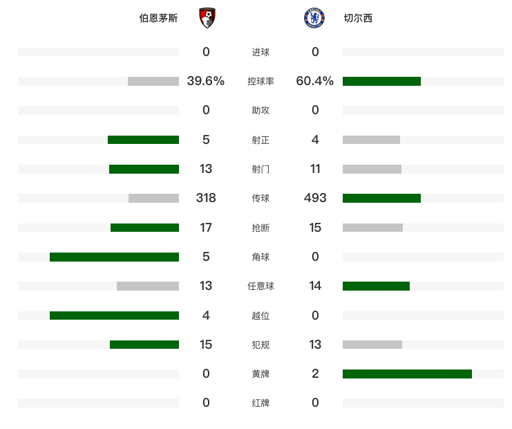 切尔西连续3轮英超不胜,2平1负仅拿2分,15轮后积25分暂列第4位,距离榜首的阿森纳分差为8分。而伯恩茅斯则连续6轮不胜,2平4负仅拿2分,15轮过后积20分。