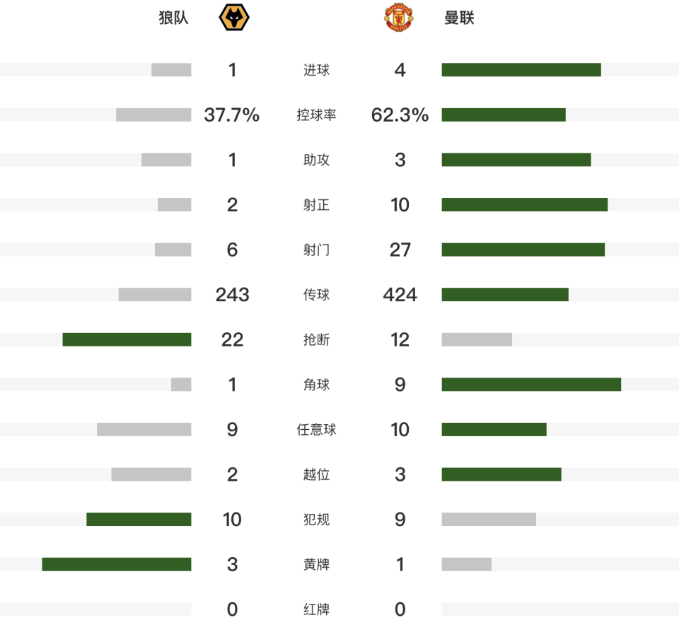 北京时间12月9日,2025-26赛季英超第15轮,曼联客场4-1击败副班长狼队,积分追平切尔西,升至积分榜第6。B费贡献2球1助攻,贝莱加德扳平,姆伯莫、芒特破门。