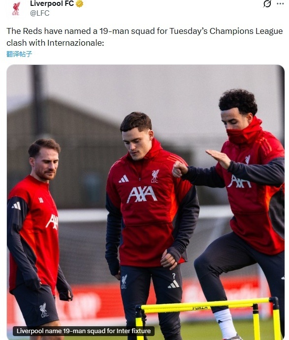 利物浦官方公布欧冠客战国米大名单,萨拉赫、加克波缺阵,维尔茨、伊萨克在列。据报道,加克波、基耶萨和远藤航缺席是因为健康问题。【详情】