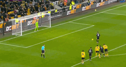 第45+2分钟,沃尔费下底倒三角传中,贝莱加德中路凌空抽射破门,狼队1-1追平了比分!