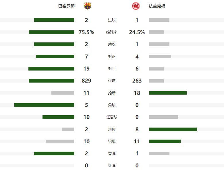 本场比赛巴塞罗那上半场表现不佳,让客场作战的法兰克福率先取得进球,不过下半场巴萨踢出了更加犀利的进攻,靠着孔德3分钟之内的梅开二度,2-1复仇法兰克福。