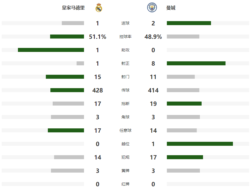 北京时间12月11日凌晨,欧冠联赛阶段第6轮中,皇马主场1-2负于曼城,遭遇各项赛事主场两连败,跌至欧冠第7,曼城升至欧冠第4。罗德里戈打破各项赛事连续32场进球荒,奥赖利补射扳平,哈兰德罚中自己创造的点球反超比分,贝林厄姆错失单刀。