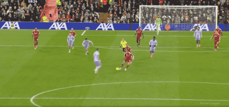 上场不到1分钟,萨拉赫就在熟悉的右路送出妙传,麦卡利斯特顺势传中,门将抢在埃基蒂克之前,将球没收。