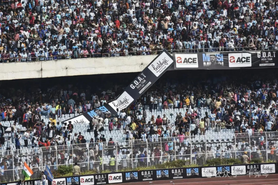 印度人很失望,球场开始骚动,梅西一走,更一发而不可收拾。