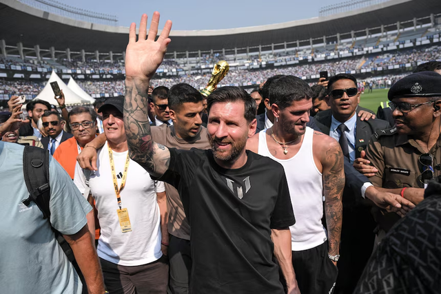 据媒体报道,当地时间周六,阿根廷足球巨星莱昂内尔·梅西(Lionel Messi)的印度之行在混乱中开始,在粉丝们购买了高额入场券且焦急等待多时后,这位阿根廷足球巨星却只在保安的包围中短暂露面,引起了粉丝们的强烈不满,现场的粉丝们开始投掷物品、撕毁座位并冲进加尔各答盐湖体育场的球场进行破坏行为。