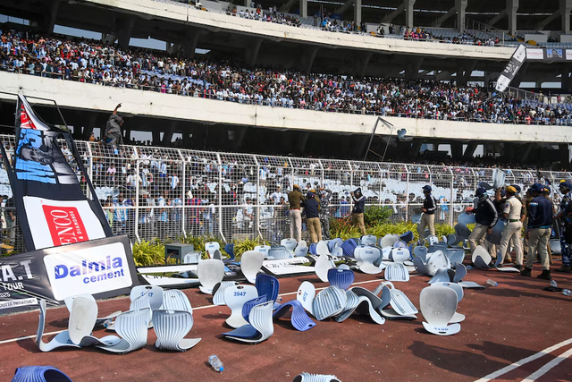 东部西孟加拉邦首府体育场内愤怒的球迷将撕碎的座椅和其他物体扔到球场上,还有一些人爬上球场周围的栅栏并投掷物体。“我不敢相信竟然有如此多的管理不善,梅西很快就离开了,我几乎没有看到他,”一名接受采访的现场粉丝说道,他说自己花了两天时间,特地从米佐拉姆邦出发近1,500公里来参加这次活动。