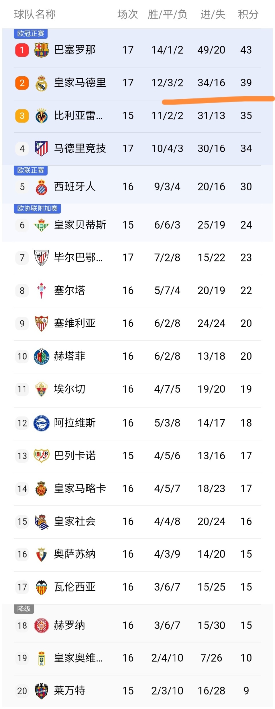 昨晚至今天凌晨,西甲第16轮结束3场较量,赛后西甲积分榜更新,我们来看看具体的情况。