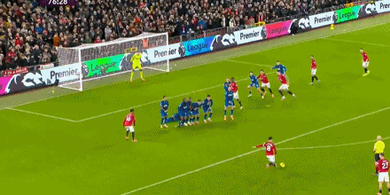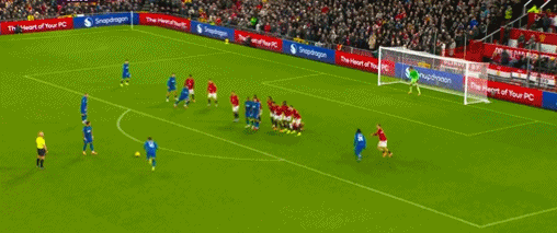 第77分钟,曼联也获得禁区外的任意球,B费操刀打出无解世界波,直挂球门右上角,红魔将比分扳平,3-3!