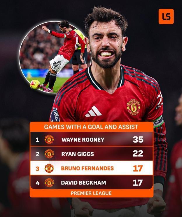 起势的伯恩茅斯,在第51分钟反超比分,塔韦尼耶任意球直接破门得分,将比分改写为了3-2,第77分钟曼联还以颜色,B费也用一记任意球直接得分,让双方3-3回到同一起跑线,加盟红魔后英超17次单场传射,让B费追平队史传奇贝克汉姆,仅次于鲁尼和吉格斯。