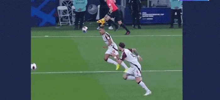 第38分钟,杜埃斜塞到后点,罗西扑球失误,克瓦拉茨赫利亚跟进铲射空门得手,巴黎圣日耳曼1-0弗拉门戈。