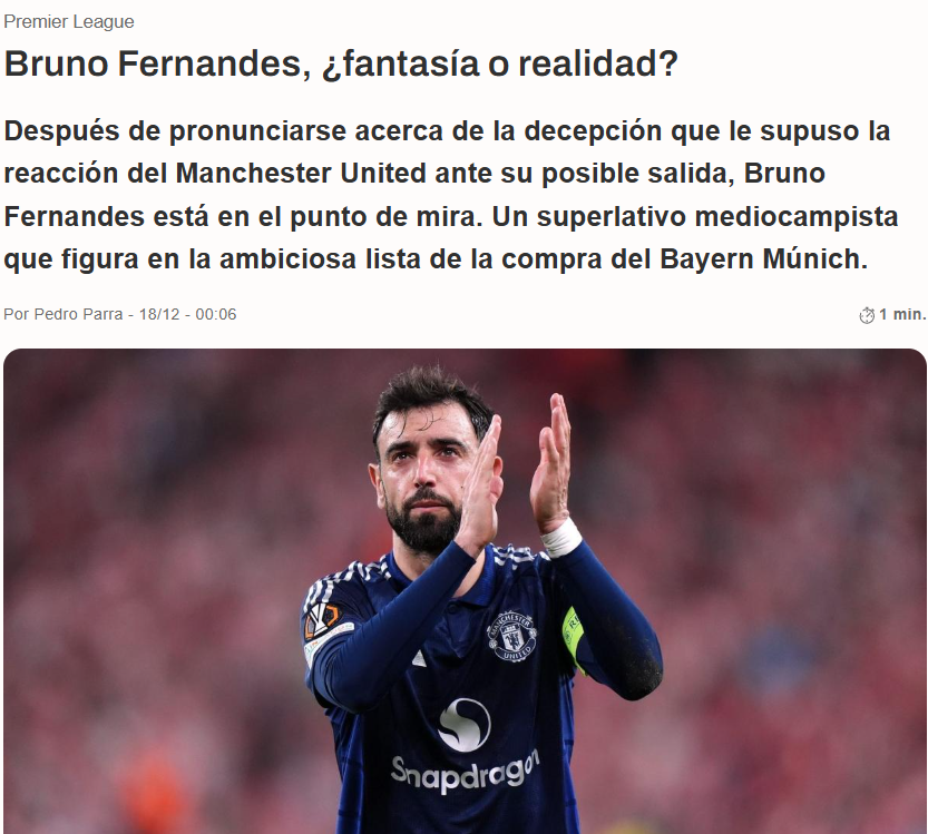 日前,B费在接受公开采访时抱怨了自己的处境,就像是我本将心向明月,奈何明月照沟渠的意味。媒体普遍猜测,这番言论出炉后,B费在曼联的日子已经进入倒计时。关于他的下一站,沙特方面已经表现积极,夏天他们就曾送出一份超过1亿的报价,而根据talksport的透露,拜仁也介入了B费争夺战。