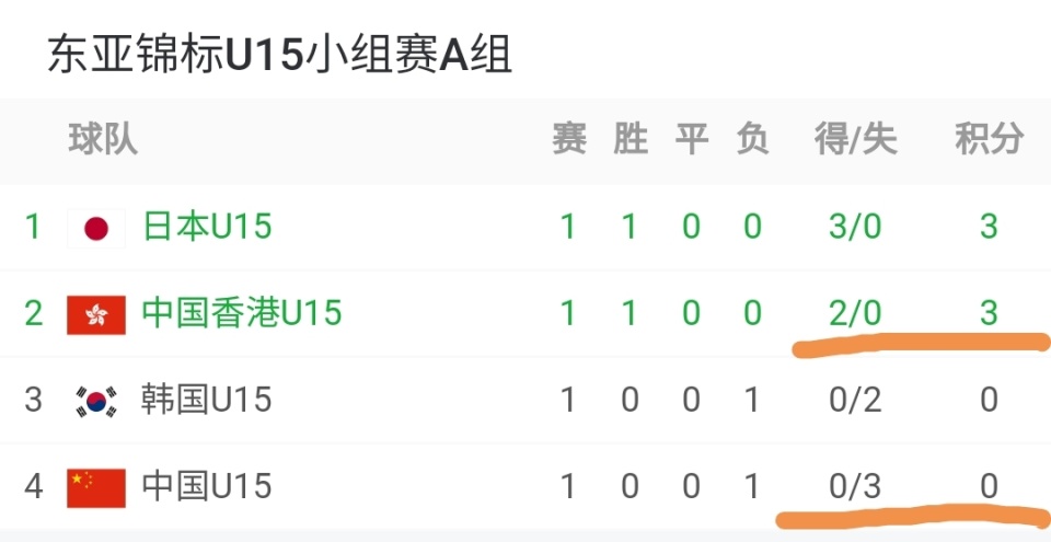 今天下午,东亚锦标U15小组赛A组第一轮结束了最后一场的较量,在这场比赛结束之后,A组的最新积分榜出炉,我们来看看具体的积分情况。