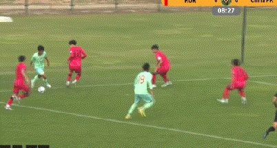 上半场第9分钟,中国队的刘宇洋在禁区左侧迎球推射,可惜稍稍偏出球门,中国队错失进球良机。
