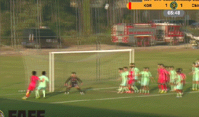 第42分钟,韩国队右侧角球开到门前,崔俊赫在门前近距离头槌破门帮助韩国队将比分扳平。