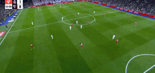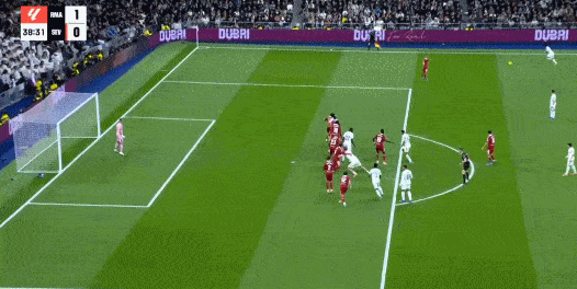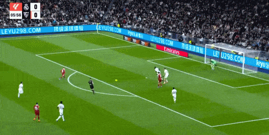 第38分钟,皇马前场右侧任意球机会,罗德里戈将球罚向禁区,贝林厄姆高高跃起头球攻门得手,皇马1-0塞维利亚。
