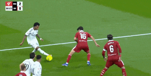 第86分钟,罗德里戈造点,姆巴佩主罚命中,皇马2-0塞维利亚。