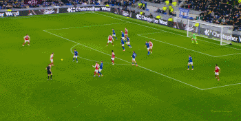 上半场补时第6分钟,阿森纳打出反击,约克雷斯禁区右路传中到门前,萨卡抢点顶偏。