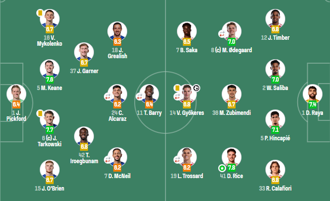 埃弗顿:1-皮克福德、5-迈克尔-基恩、6-塔科夫斯基、15-奥布莱恩、16-米科连科、24-阿尔卡拉斯(75’34-罗尔)、37-加纳、42-伊洛格布纳、7-麦克尼尔(75’20-迪布林)、11-蒂尔诺-巴里(65’9-贝托)、18-格拉利什