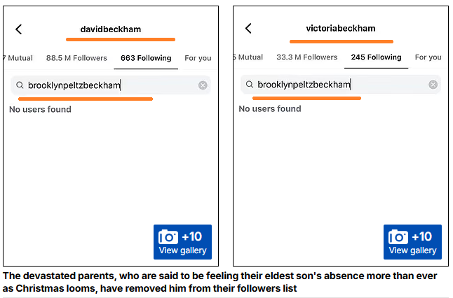 一位消息人士称:“这是2025年最严重的冷落,也充分表明了他们之间的裂痕有多深。”在消息人士看来,如果布鲁克林先屏蔽了他的父母,那么取消关注应该是“自动发生”的。