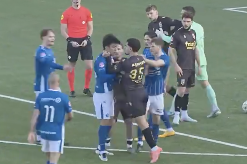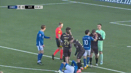 维特斯的35号球员想强行将倒地的王博豪拉起来。邓伯什的球员冲上前,为王博豪出头。接着,王博豪也自己站起来,和对手对峙。不过,王博豪与对手并没有发生冲突,他很快就被拉开。与此同时,两队的其他多名球员则发生了肢体和言语上的冲突。