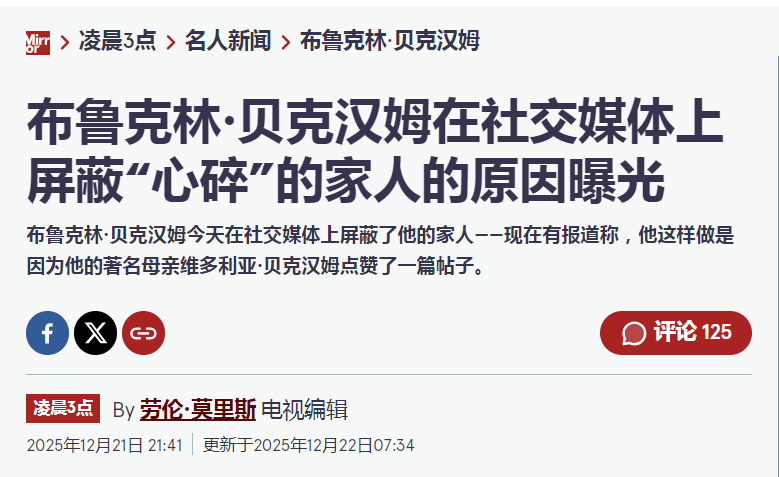 布鲁克林屏蔽家人的举动,显然是想表明一切到此为止,这是一种彻底的决裂信号。这场在社交媒体上公开上演的家庭剧,短期内似乎还看不到和解的曙光。