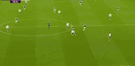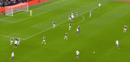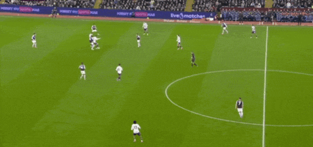 B费也有机会,由他策动的这次进攻中,在连续晃动之后,终于打出来维拉中路防守漏洞,但是最后一下被维拉封堵。