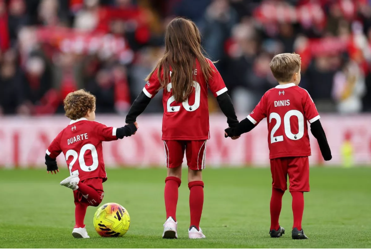 上周六,在利物浦对阵狼队的英超比赛中,这位已故前锋的遗孀带着两个儿子迪尼斯和杜阿尔特,重新踏上了安菲尔德球场。