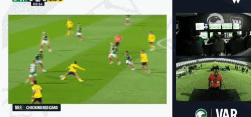 第10分钟,萨阿德-纳赛尔鞋钉踩中对手脚后跟,主裁一开始出示红牌,回看后改判黄牌,利雅得胜利逃过一劫,避免开局就少打1人。