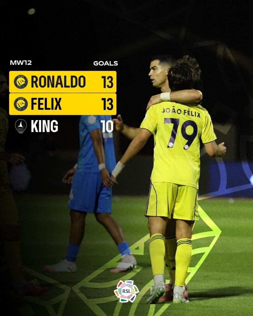 沙特超首冠稳了 C罗&菲利克斯13球携手领跑射手榜 胜利2分领跑