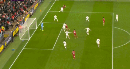 第79分钟,古德蒙松左路传中,博尔瑙脚后跟一磕,勒温跟上挑射破门,不过后者越位在先,利物浦逃过一劫。