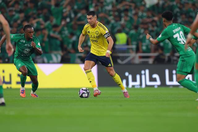利雅得胜利士气大涨,继续加强攻势。第42分钟,阿米里右路45°传中,C罗抢点头槌攻门,稍稍高出横梁。