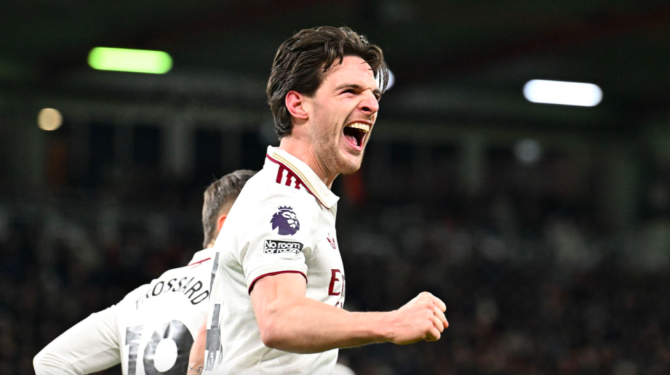 第71分钟,厄德高送出精妙直塞,萨卡倒三角传中,赖斯跟进,梅开二度。