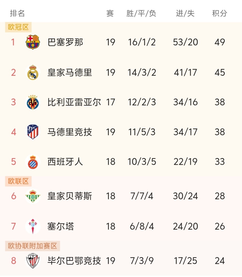 随着皇马5-1造惨案,巴萨8连胜,西甲最新积分榜出炉:巴萨第1,皇马第2!