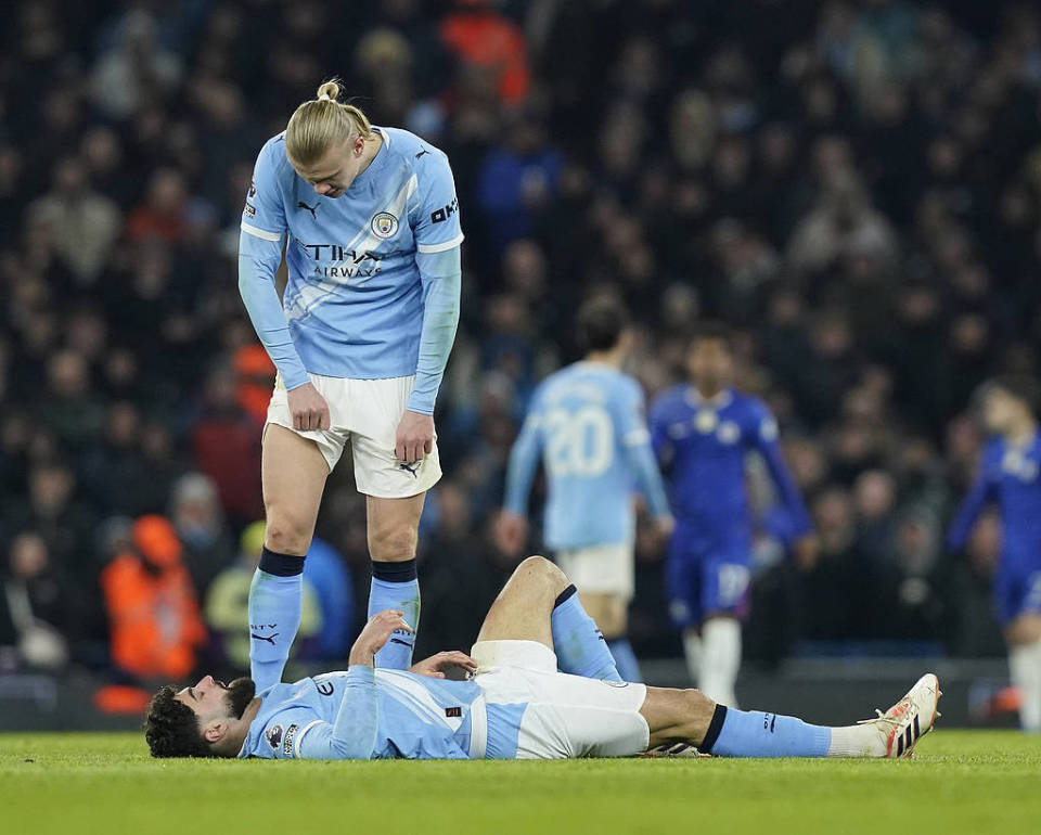值得注意的是,除了折损格瓦迪奥尔之外,鲁本-迪亚斯也在与切尔西的比赛中因伤被换下。再加上斯通斯几乎无法上场。