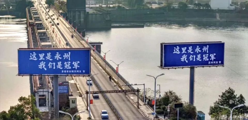 “这里是永州,我们是冠军”的广告牌