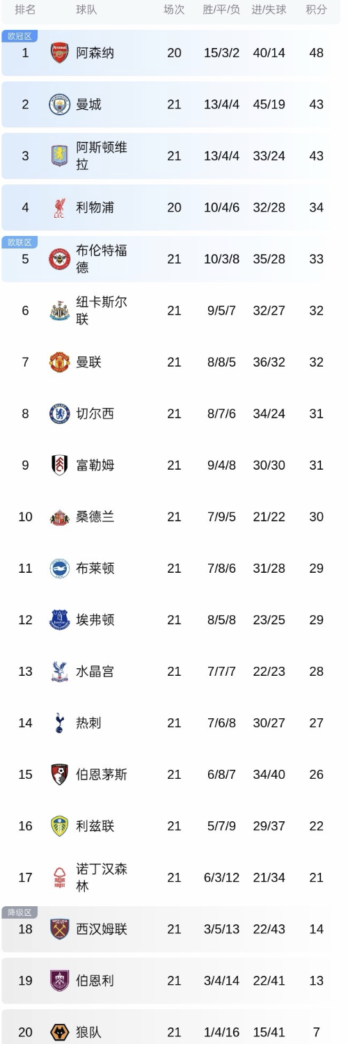 北京时间1月8日,英超联赛第21轮结束多场比赛的争夺,几支豪门球队相继翻车丢分,对于阿森纳来说极为有利,枪手有望扩大领先优势,剑指英超冠军。英超一夜5场冷门!曼城3连平,曼联+切尔西换帅白搭,积分榜大乱。