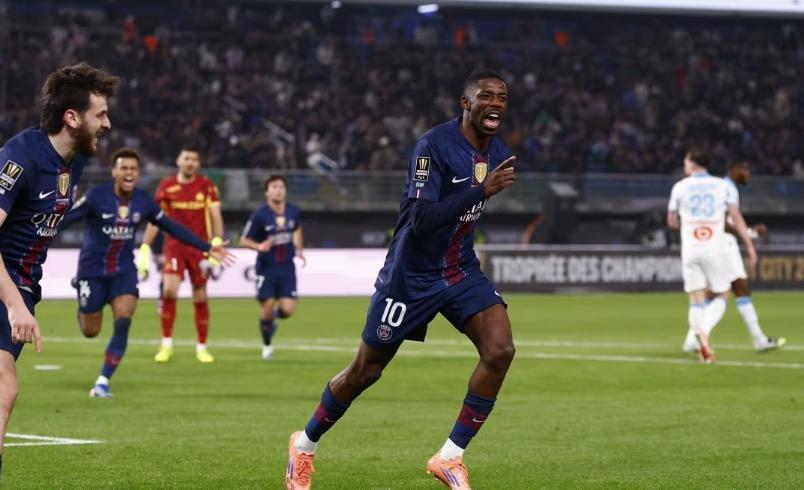 金球先生登贝莱,开场13分钟就帮助大巴黎取得了1-0的领先,随后马赛大举压上反扑,虽然舍瓦利耶状态神勇,连续贡献神扑救主,但马赛还是在下半场靠着格林伍德的进球和帕乔的乌龙反超了比分,伤停补时最后阶段,贡萨洛拉莫斯打入绝平进球,续命成功的大巴黎,点球大战靠着舍瓦利耶的神勇发挥,6-3击败马赛完成了法超杯的四连冠。