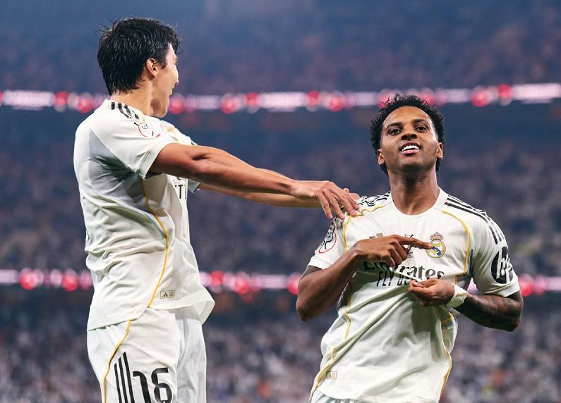 银河战舰此役带球入场,巴尔韦德不到2分钟的任意球世界波,就帮助皇马取得了1-0的梦幻开局,下半场巴尔韦德再次送出助攻,完成传射建功的好戏,罗德里戈的进球,将比分改写为了2-0,虽然瑟洛特很快追回一球,但众志成城的皇马,顶住了对手的反扑,以2-1笑到了最后。