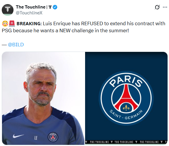 关于西班牙媒体《马卡报》援引德国媒体的说法,称恩里克已经决定在今年夏天离开巴黎这一消息引起热议。