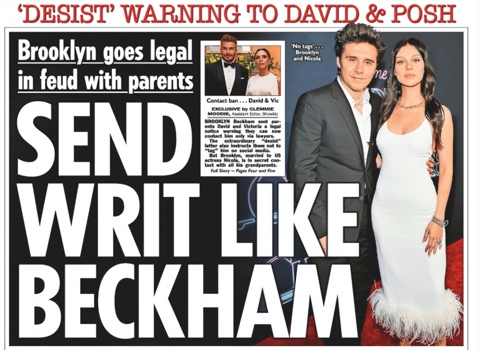 原来,在去年夏天,布鲁克林曾向自己的父母发去信函,告知他们只能通过律师联系自己,且明确要求父母不许在社媒提及自己。显然,布鲁克林是要与贝克汉姆夫妇彻底撇清界限。