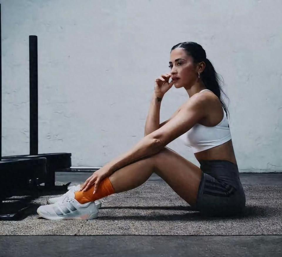 她对着镜头笑了笑,开始往包里放东西。 耳机,水壶,擦汗的毛巾。 整个过程非常安静,只有细微的环境音。 然后她坐下,拿起那双阿迪达斯Dropset 4运动鞋。