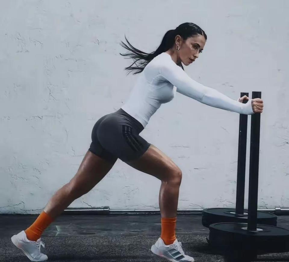 画面里,安东内拉不是在专业的摄影棚。 场景看起来就是她家的某个房间,晨光透过窗户洒进来。 她没有浓妆,头发随意扎起,穿着简单的运动背心和紧身裤。