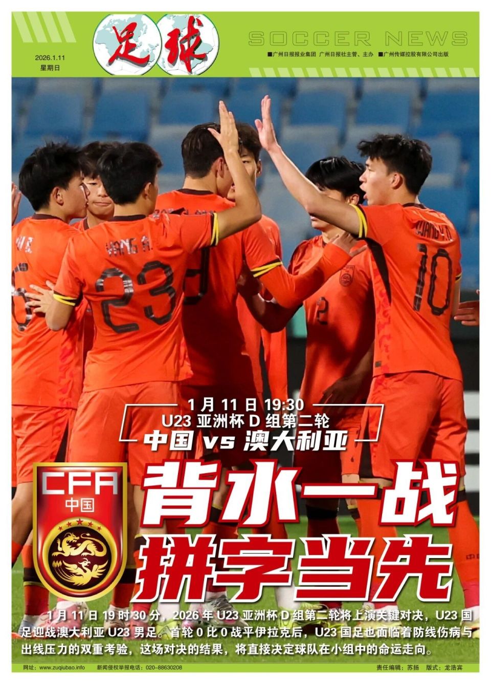 撰稿/鲁蜜、寒冰 1月11日19时30分,2026年U23亚洲杯D组第二轮将上演关键对决,U23国足迎战澳大利亚U23男足。首轮0比0战平伊拉克后,U23国足也面临着防线伤病与出线压力的双重考验,这场对决的结果,将直接决定球队在小组中的命运走向。【点击进入直播间,为中国队加油】