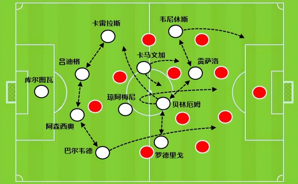 当贝林厄姆回到前腰位置,他跟贡萨洛不断压迫马竞的中路出球点,使得马竞只能把球向两侧分,结果卡雷拉斯和巴尔韦德都具备身体优势,奠定了胜利的基础。