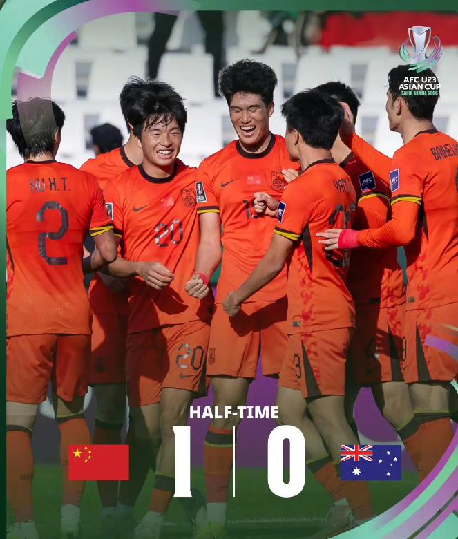 此前小组赛首轮,中国队0-0平伊拉克。中国U23队此前5次参加亚洲杯均未能小组出线。战胜强大的澳大利亚队,全队为争取历史性的小组出线奠定坚实基础。