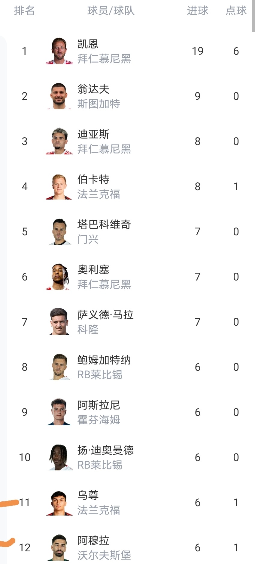 射手榜:凯恩领先优势巨大,根本没有对手。
