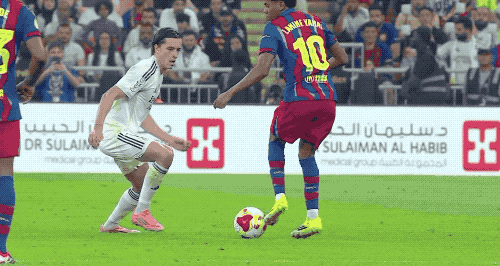 第36分钟,巴萨打出快速反击,拉菲尼亚并没有传给中路的莱万,后点的亚马尔也已经到位。