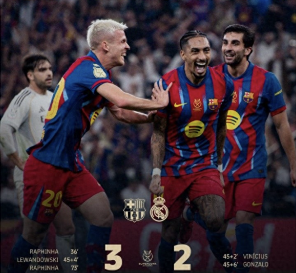 第73分钟,拉菲尼亚在倒地后射门经过折射再次飞进皇马的球门。随后的比赛皇马大举进攻,未能攻入第3球,以2-3输给了巴萨,姆巴佩替补出场难救主。自从上赛季以来,也就是当姆巴佩加盟皇马后,皇马6次与巴萨交手1胜5负。