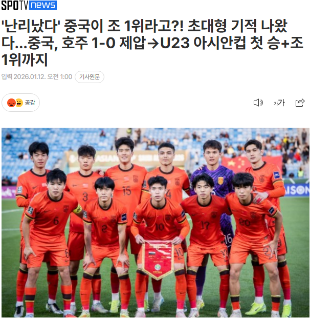 韩媒酸了:这是真的吗?中国U23太疯狂太可怕了!竟然小组第1